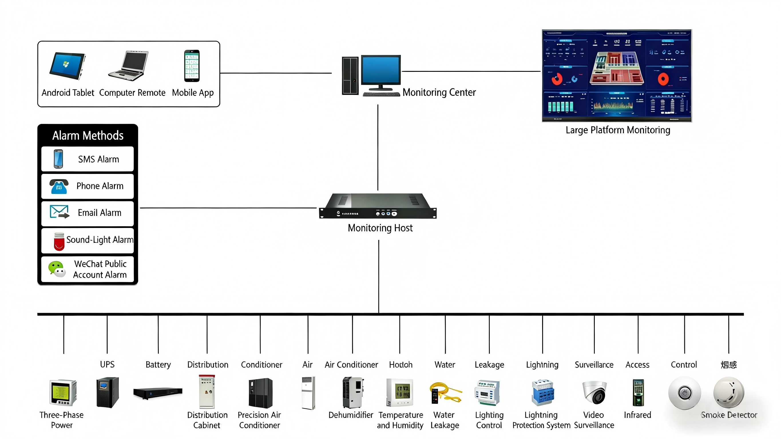The power consumption of the power and environment monitoring system mainly depends on the quantity and type of its hardware devices. The power and environment monitoring system typically includes hardware devices such as sensors, host devices, and interlocking devices. The power consumption of these devices directly affects the overall power consumption of the system. Sensors used for real-time collection of various environmental conditions in the computer room, such as temperature and humidity, smoke, and water leakage, usually have low power consumption, but when the number is large, the overall power consumption will accumulate. Hosts and transmission devices, such as power and environment monitoring hosts, monitoring hosts, servers, as well as wired and wireless transmission devices, are used to transmit data to the monitoring platform. The power consumption of transmission devices depends on their working mode and transmission distance.